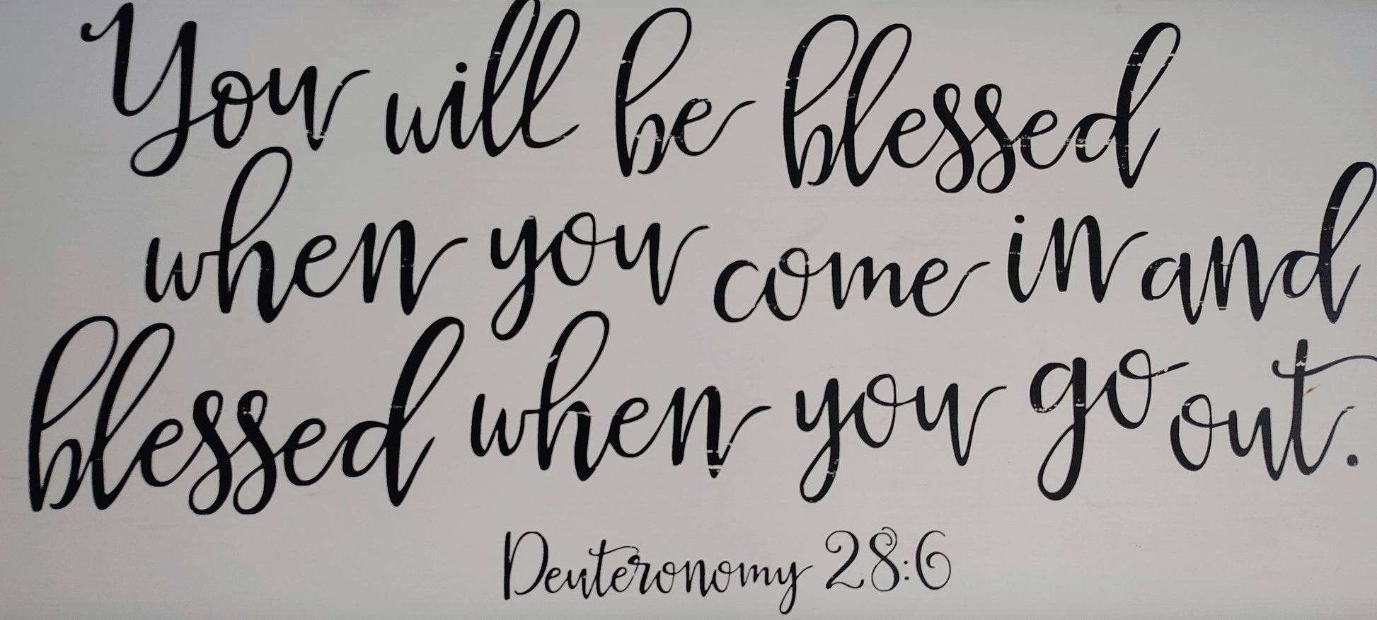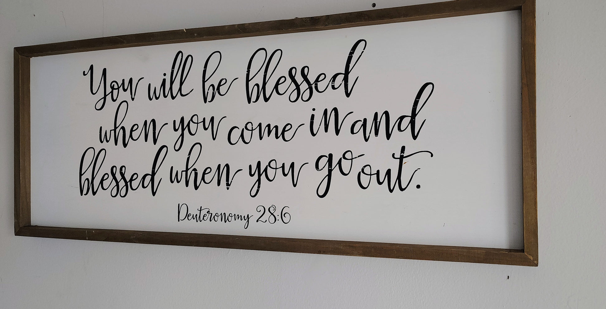 Blessed When You Come In” – Deuteronomy 28:6 Framed Scripture Sign (32"x13")